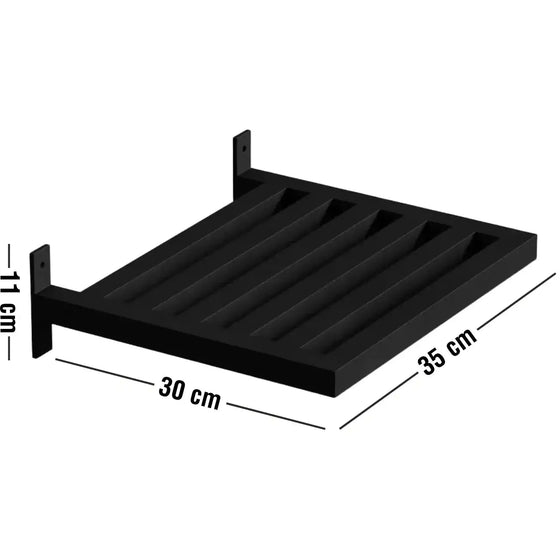 Hylden er udført i sort metal med elegante lameller, der giver et eksklusivt og tidløst udtryk. Den monteres nemt direkte på væggen, hvilket frigiver gulvplads og giver et let og luftigt look - ideelt til både små og store soveværelser.