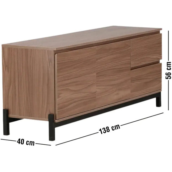 Dette møbel kombinerer stilfuldt design med funktionalitet og passer let ind i ethvert hjem. Fremstillet i MDF med et elegant finish, tilbyder skænken generøs opbevaringsplads med to venstrestillede skabe og to praktiske skuffer. Skabene indeholder hver to hylder, som giver mulighed for skjult og organiseret opbevaring, så dine ting holdes pæne og ryddelige.