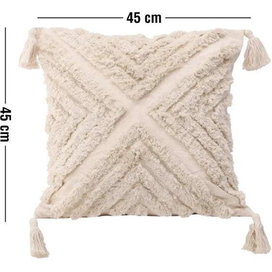 Dette pudebetræk har dekorative kvaster i hvert hjørne og en skjult lynlås i bunden for et rent og sofistikeret udtryk. Den slidstærke blanding af polyester og bomuld gør det både blødt, holdbart og let at vedligeholde.