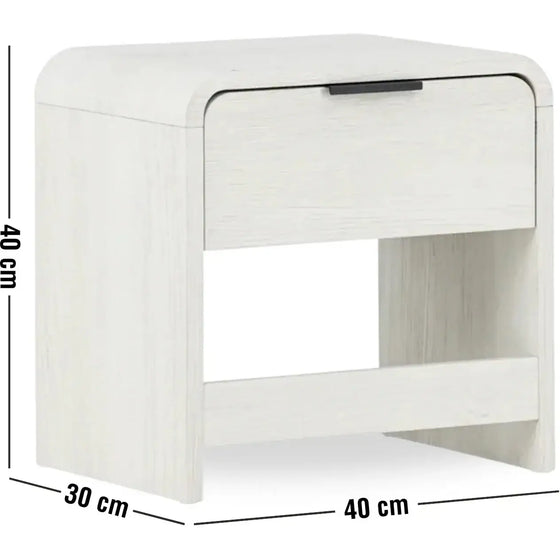 Lyngdal er det perfekte sengebord til at fylde dit rum ud og give det et praktisk præg. Dette bord er lavet af hvidpigmenteret MDF og har et stilfuldt og enkelt design. Bordet er lille og praktisk bord, der passer perfekt ved siden af din seng som natbord.