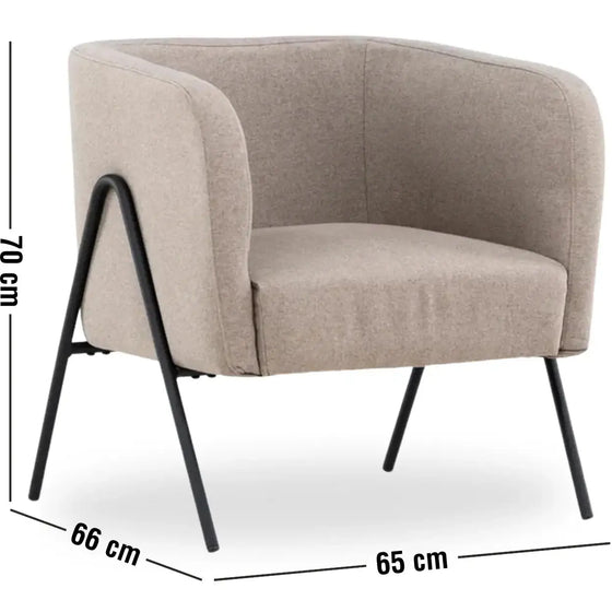 Oplev enkelheden ved gennemtænkte detaljer med vores nye lænestol, Rika. Med sine sorte metalben, der er smagfuldt placeret på ydersiden af stellet, giver den et moderne twist til klassisk design. Det jordnære stof bringer en varm og indbydende følelse til ethvert rum.