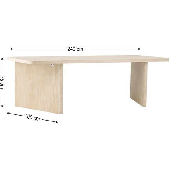 Den neutrale beige tone giver mulighed for nem integration med forskellige interiørstilarter og farvesammensætninger, hvilket giver din spisestue en tidløs elegance. Skagen spisebord har et robust og stabilt design, der sikrer, at det står stabilt, selv under livlige middage og store familiesammenkomster.